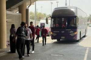 媒体人@球圈赵探长晒照,中国队赛前提前两个多小时便抵达球馆,比对手韩国队早得多。