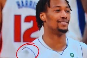 GIF-发际线粉蹭掉了!杰伦-布朗的头一通乱蹭 OG球衣一大团黑